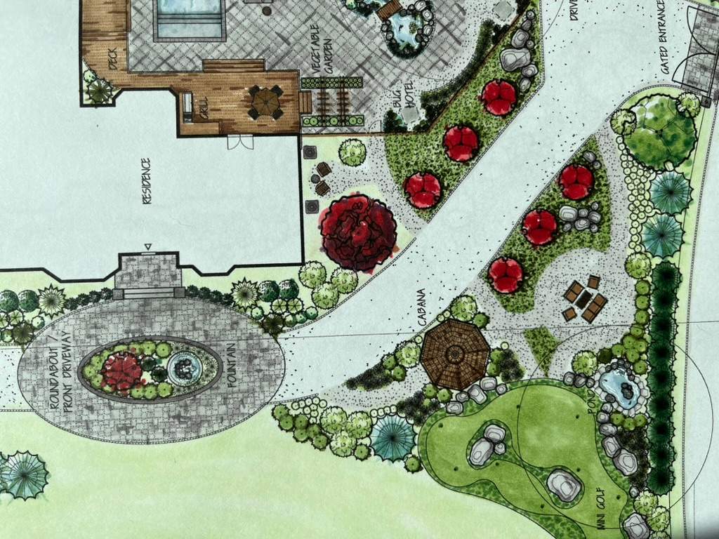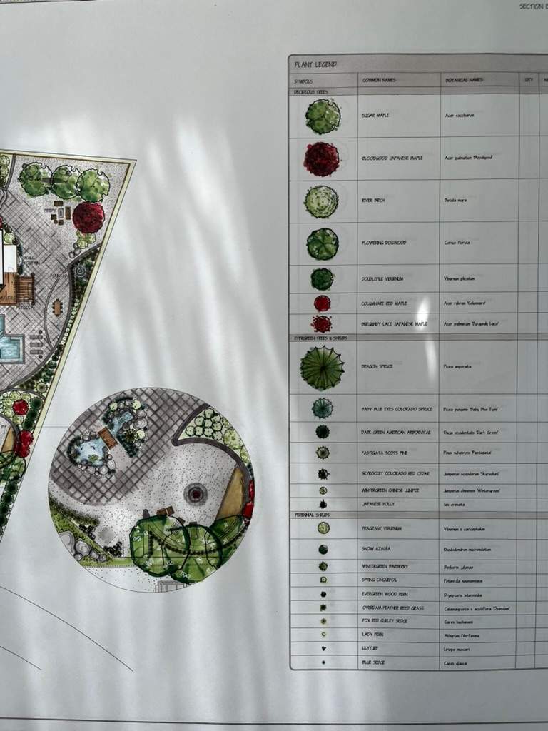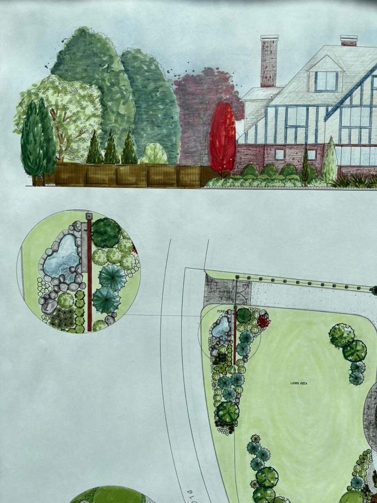 This project showcases my graphic design and technical drafting skills through the creation of a fully scaled landscape and hardscape design for the Kleeman Residence in West Orange, New Jersey. Using a site survey provided by the client, I developed a comprehensive design package in Dynascape Design, including a detailed site plan, section elevation, and complete plant list. To enhance client understanding and visualization, I also produced a hand-rendered, colored version of the design using markers and colored pencils, translating technical drawings into a clear and approachable presentation.
