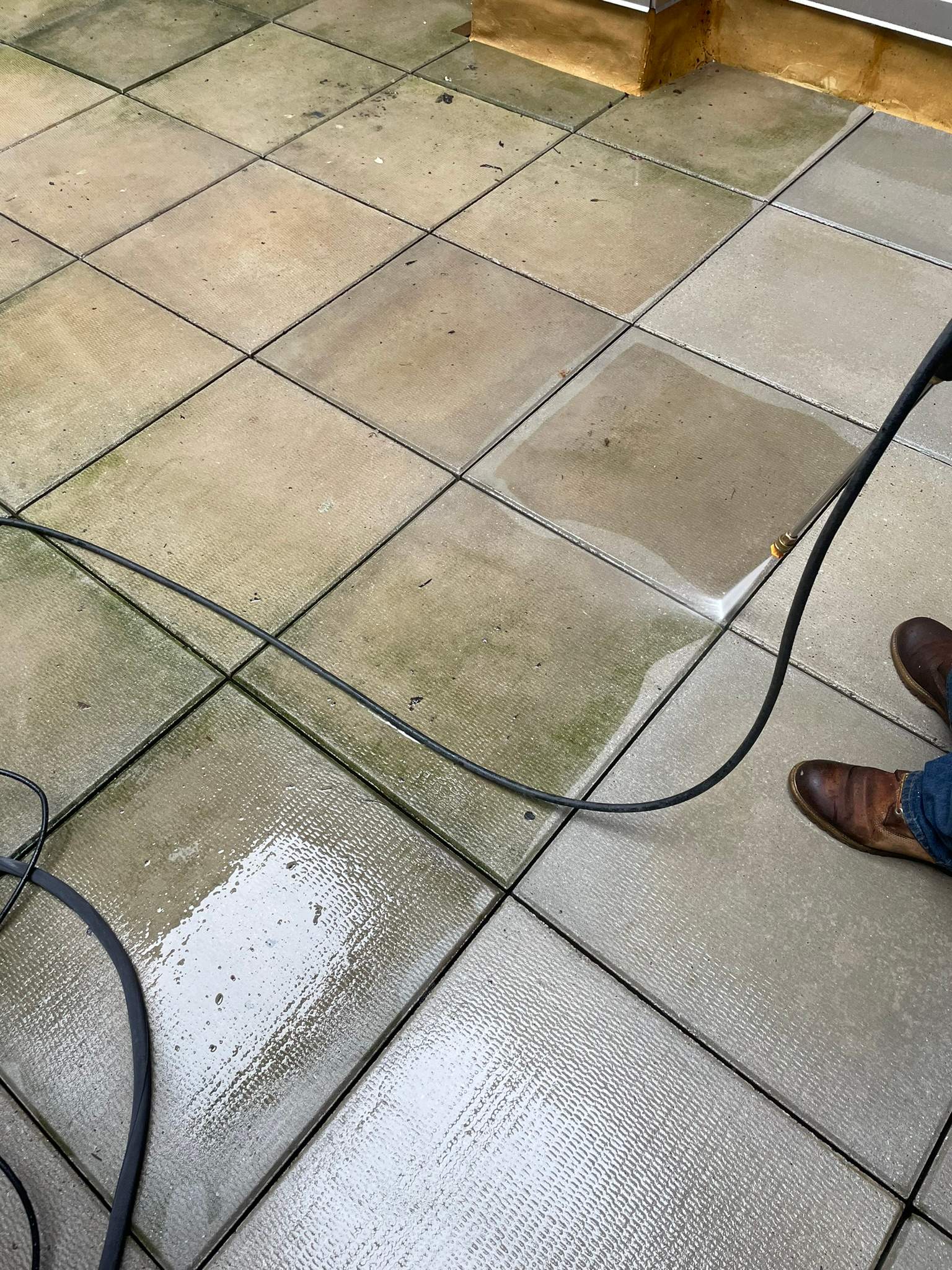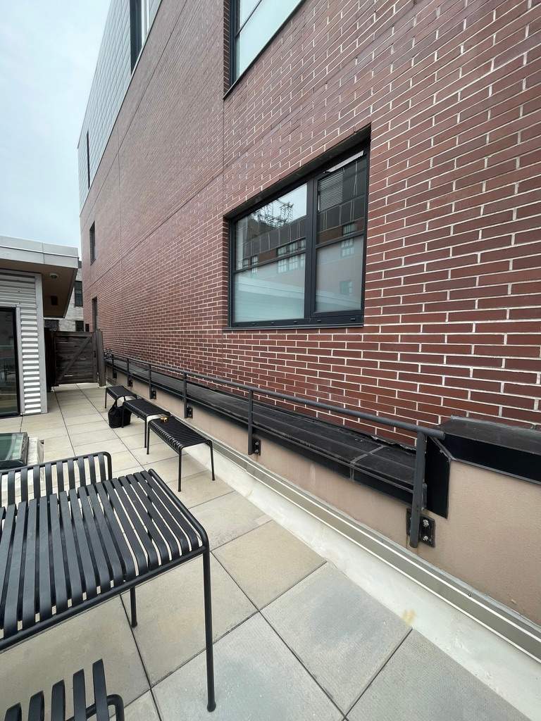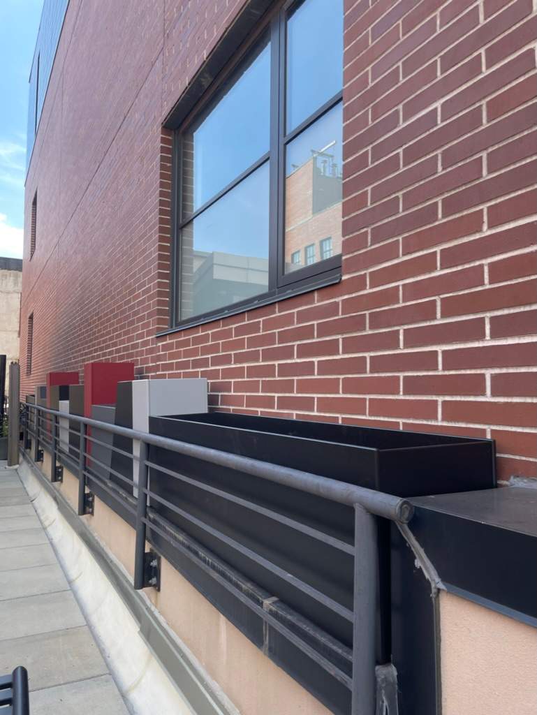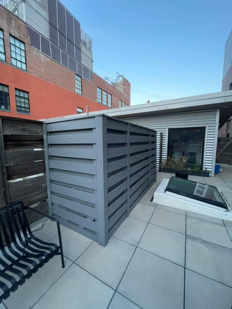 Phase 5: Installation of a wooden rooftop fence to conceal HVAC units, stained gray to match the planters