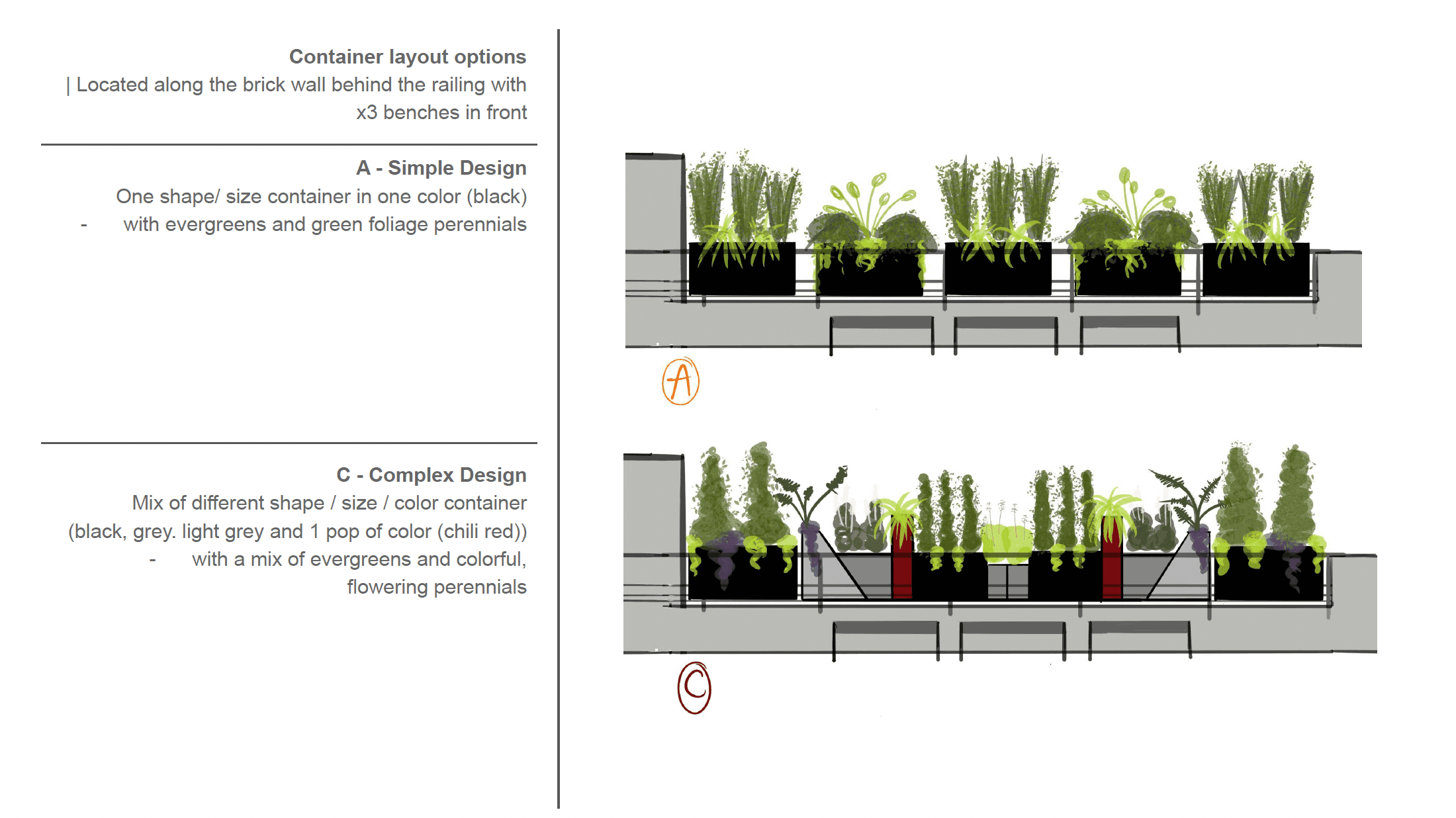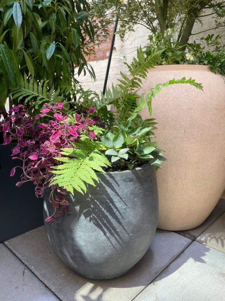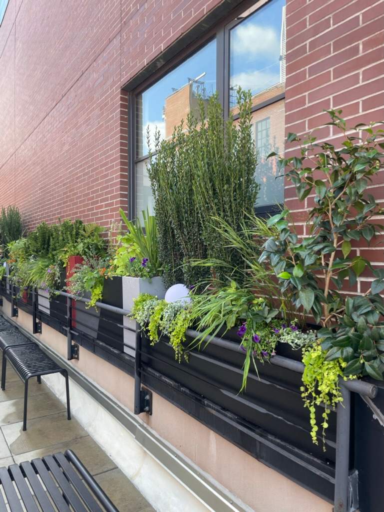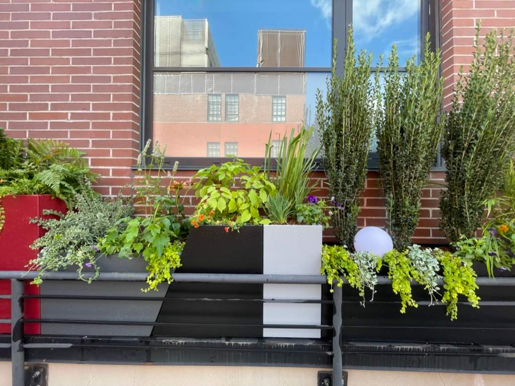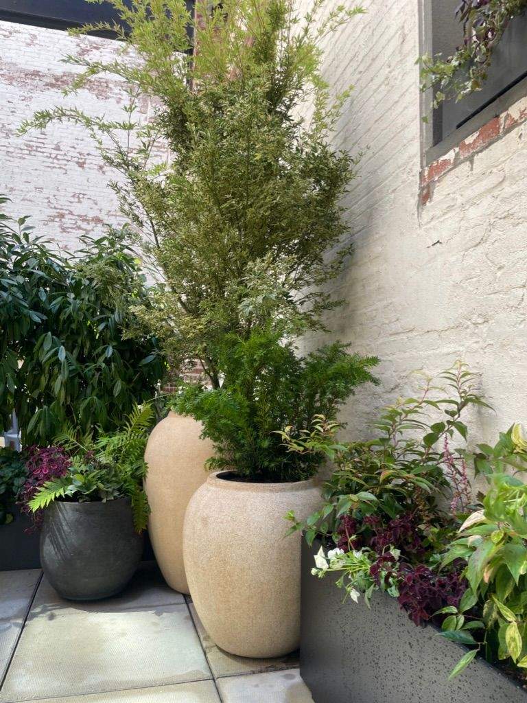 Phase 4: Planting of backyard and rooftop containers with evergreens and flowering perennials